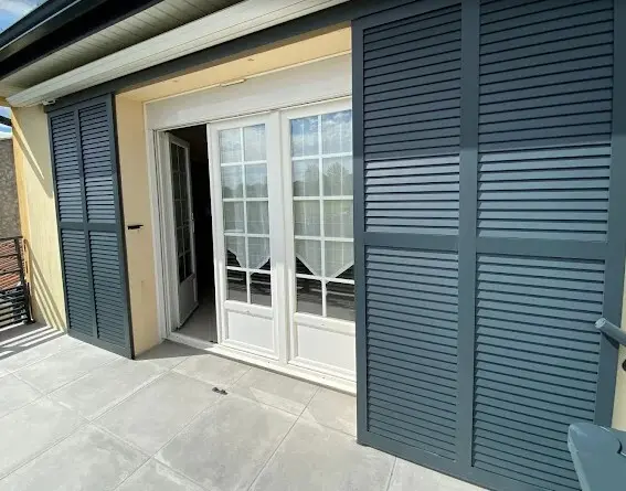 Composé de lames ajourées, ce volet laisse passer l’air et un peu de lumière. Il est idéal dans les régions ensoleillées et permet une meilleure ventilation, tout en protégeant l’intérieur.